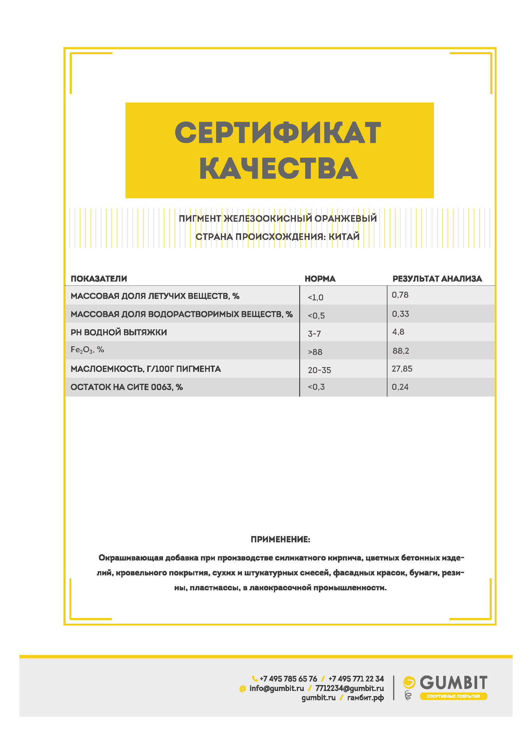 Пигмент неорганический железоокисный желтый для окрашивания резиновой крошки