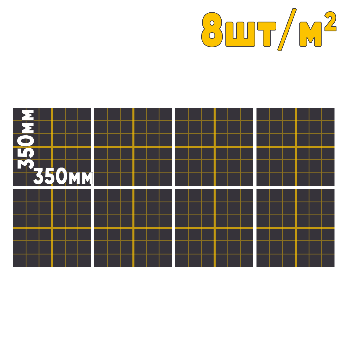 Резиновая плитка размером 350 х 350 мм с рельефным узором в виде сетки. Благодаря этой рельефной поверхности обеспечивается более надёжное сцепление с подошвой обуви, позволяя не скользить даже при дожде и гололёде.